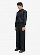 Прямые унисекс брюки с идеальной посадкой. Деликатная полоска в рисунке материала визуально вытягивает силуэт. Боковые карманы спереди и симметричные карманы с листочкой сзади. Брендирование — металлический съемный пин F